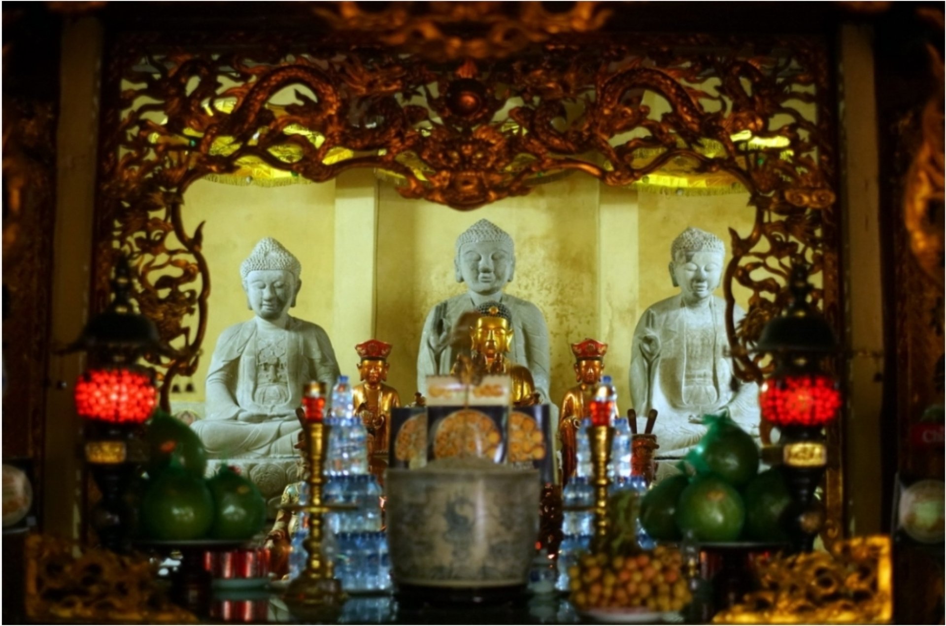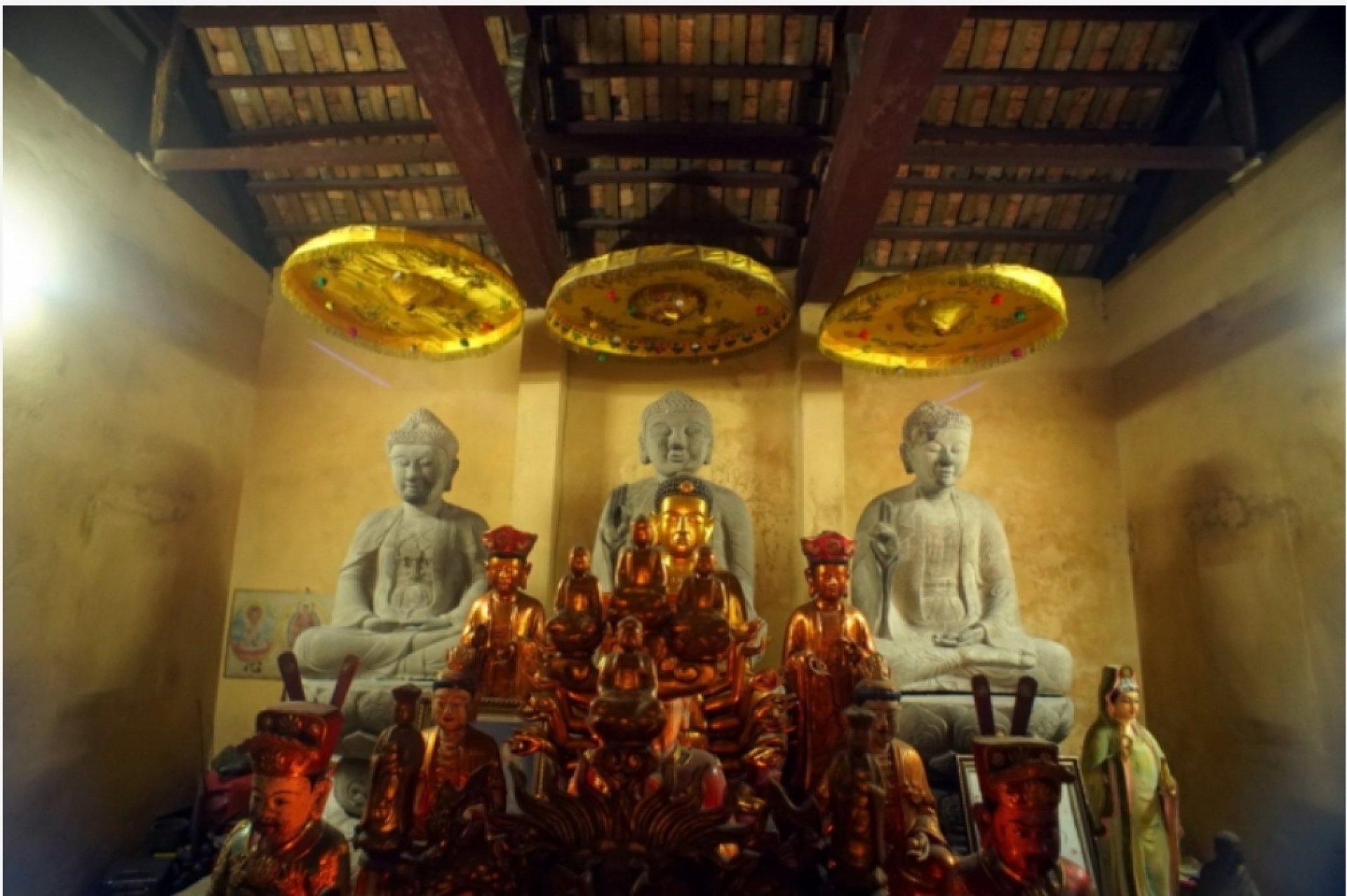 Mặt sau của bộ tượng Tam Thế chùa Linh Ứng.