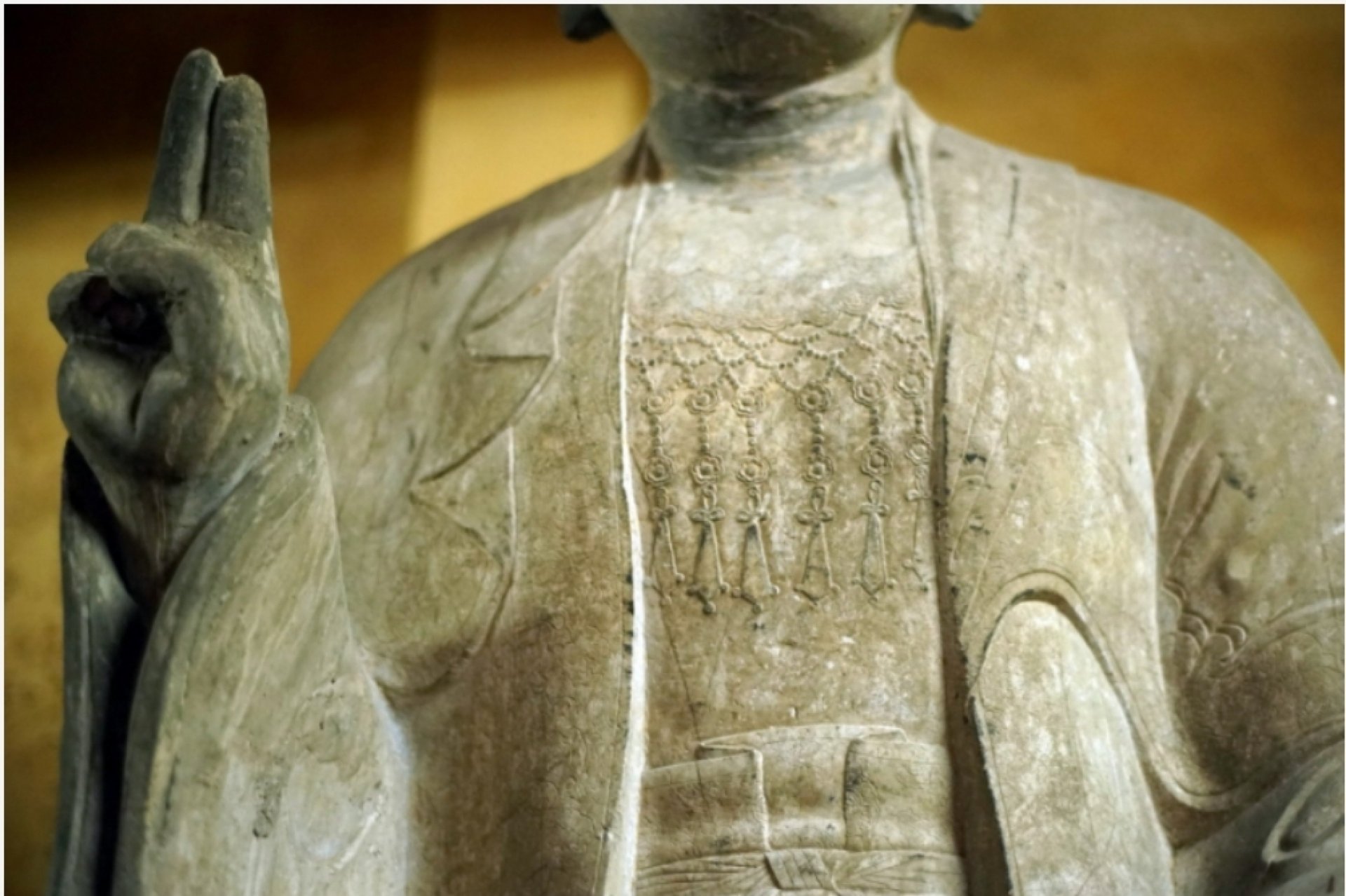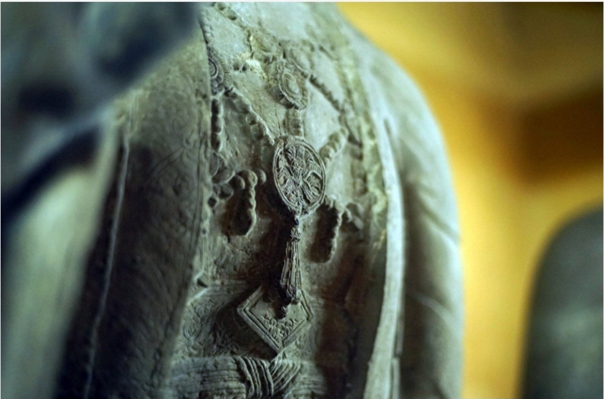 Cận cảnh chi tiết vòng dây trên ngực áo tượng.